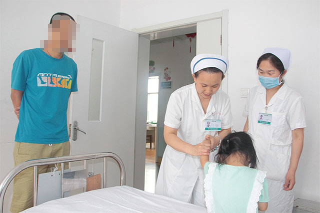 像往常一樣,7點20之前,我就得趕到醫(yī)院。換好衣服后,立刻進入了工作狀態(tài)。先與夜班護士溝通,了解孩子的身體狀況,并與家長簡單交流。同時,準備孩子白天需要使用的藥物,仔細比對孩子的姓名、床號、藥劑名稱、使用量等,核查無誤后,暫時將藥物放在藥物架上。進入病區(qū)后,不停地穿梭于各個病房之間。
