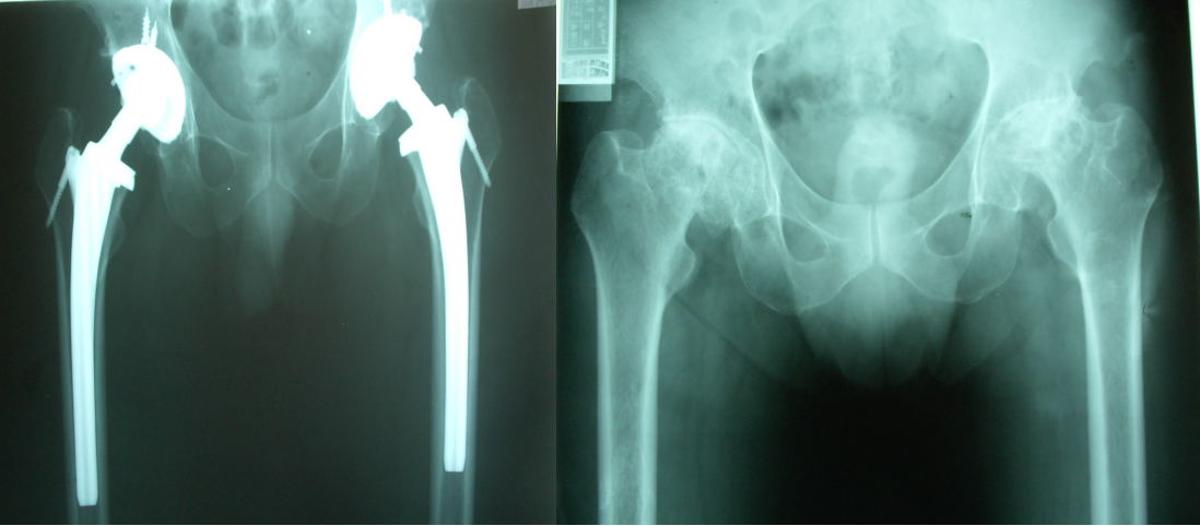 患者髖關(guān)節(jié)治療前后X光片對比圖