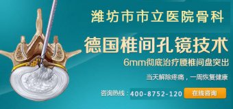腰椎間盤(pán)突出癥是臨床常見(jiàn)的引起腰腿痛的疾病之一,嚴(yán)重者無(wú)法正常走路,甚至翻身都困難。傳統(tǒng)的治療方法效果差、痛苦多、復(fù)發(fā)率高,讓患者們苦不堪言。 濰坊市市立醫(yī)院骨科,以 微創(chuàng)椎間孔鏡技術(shù)、手術(shù)治...