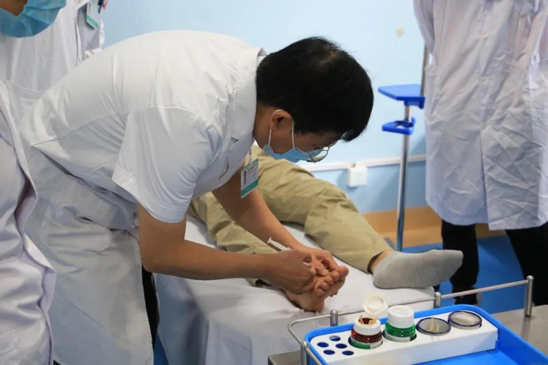 上午,王思峰主任通過典型案例分析、現(xiàn)場演示了正清風(fēng)痛寧在痛風(fēng)癥、膝關(guān)節(jié)骨性關(guān)節(jié)炎、踝關(guān)節(jié)炎、肘關(guān)節(jié)關(guān)節(jié)炎、中風(fēng)后遺癥、腦供血不足等疾病的定點注射操作技術(shù),治療疑難雜癥的星狀神經(jīng)節(jié)注射新技術(shù),并對治療中的安全操作要點,進行答疑解惑,楊建業(yè)主治醫(yī)師進行了正清風(fēng)痛寧電致空透藥技術(shù)的現(xiàn)場操作演示。