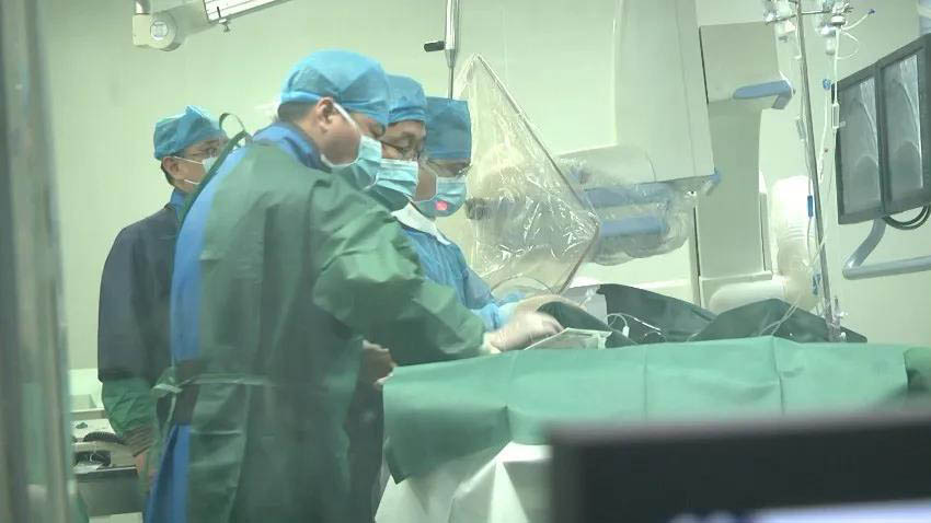 心內(nèi)科主任王孝順密切關(guān)注介入手術(shù)進(jìn)展