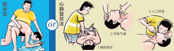 使患者成為頭低臀高位:迅速抱起患者的腰部,使其背向上、頭下垂,盡快倒出肺、氣管和胃內(nèi)積水;也可將其腹部置于搶救者屈膝的大腿上,使頭部下垂,然后用手平壓其背部,使氣管內(nèi)及口咽的積水倒出;也可利用小木凳、大石頭、倒置的鐵鍋等物做墊高物。在此期間搶救動作一定要敏捷,切勿因控水過久而影響其他搶救措施。以能倒出口、咽及氣管內(nèi)的積水為度,如排出的水不多,應(yīng)立即采取人工呼吸、胸外心臟按壓等急救措施。