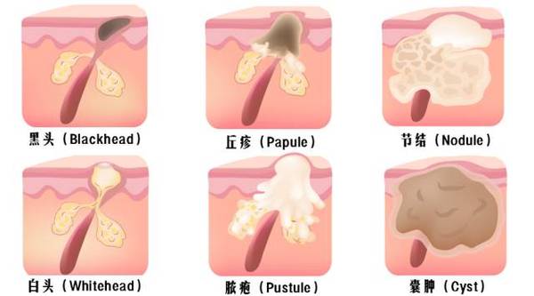 丘疹:是痤瘡最基本的損害。座瘡患者的在毛囊皮脂腺口堵塞的情況下,形成毛囊皮脂腺內(nèi)缺氧的環(huán)境,厭氧性的痤瘡丙酸桿菌大量繁殖,分解皮脂,產(chǎn)生化學(xué)趨化因子,白細(xì)胞聚集而發(fā)生炎癥性丘疹,所以這類丘疹屬于炎性損害。