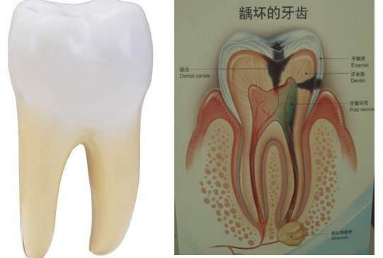 蛀牙是牙齒硬組織逐漸被破壞的一種疾病。蛀牙也同許多疾病一樣,患病之初有蛀牙的先兆。雖然牙釉質(zhì)是全身最堅硬的組織,但它們也并不是不可滲透的。較確切地說,牙齒也是一種多孔的物質(zhì),如同一個堅硬的海綿狀的物質(zhì)所組成。