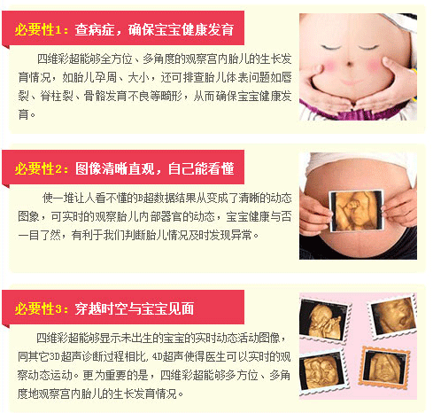 選擇在四維彩超的最佳時間里做檢查,除了能夠給孩子留下珍貴的影像記錄以外,更重要的作用是排畸。各個孕期都可以進行四維超聲檢查,但最佳時間是懷孕20-24周,此時胎兒各主要臟器已發(fā)育,羊水量適量、胎兒已進入腹腔,便于胎兒畸形的篩查,加之現(xiàn)在。