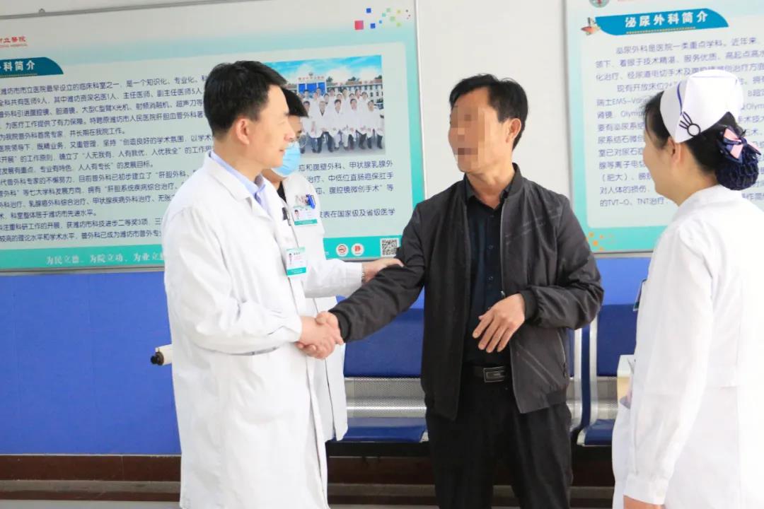 “多虧解院長(zhǎng)的高超醫(yī)術(shù),為我治愈了病痛,感謝您!”4月春風(fēng)送暖,一幕溫馨的畫面在泌尿外科病區(qū)展開。崔先生手拿兩幅長(zhǎng)長(zhǎng)的畫卷,帶著感謝的話語將兩幅書法作品鄭重地遞給了泌尿外科馬瑞香護(hù)士長(zhǎng)。是什么讓崔先生幾經(jīng)輾轉(zhuǎn)也要親自前來表達(dá)感激之情呢?事情還要從一個(gè)多月前說起。