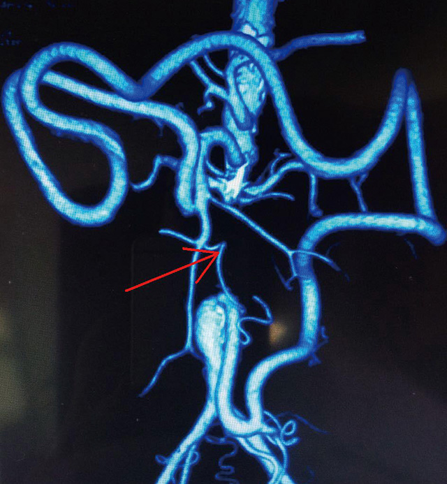 入院后,普外科首席專家李森教授和主管醫(yī)生為孫先生做了詳細的查體,發(fā)現病人雙下肢皮溫較低,右足踇趾、中趾缺如,中趾處創(chuàng)面觸痛明顯,雙足血供差,可見多處潰瘍愈合疤痕,雙側股動脈、腘動脈、脛后動脈、足背動脈搏動未觸及。動脈強化造影示腹主動脈及雙側髂總動脈完全閉塞,僅有少量交通支與遠側髂外動脈相通。明確診斷為腹主動脈硬化閉塞癥。根據各項相關檢查證實,病情是在腹主動脈硬化閉塞癥導致的嚴重肢體缺血癥狀,必須行血管轉流術,才能獲得較好的治療效果,否則只能截肢。