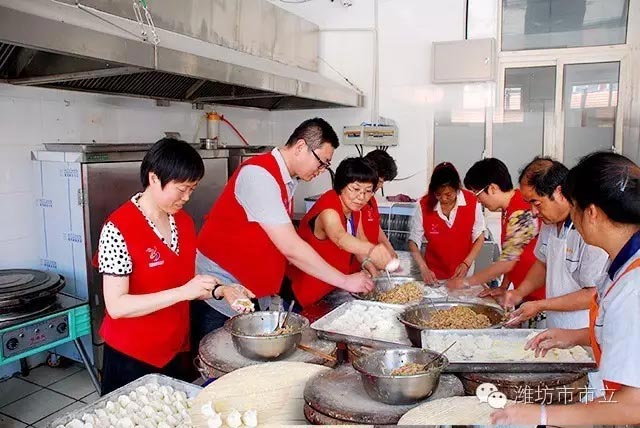 中午10:30分,由醫(yī)務人員組成的志愿者小組來到餐廳,為住養(yǎng)老人包起了餃子。在餐廳內(nèi),身披紅色馬甲的志愿者們,有的搟餃子皮、有的捏餃子,忙活的熱火朝天,不一會兒一鍋鍋熱騰的餃子便送到了老人的嘴邊。老人們吃著香氣四溢的餃子,從他們臉上的笑容可以看出,對于志愿者們的到來他們非常開心。