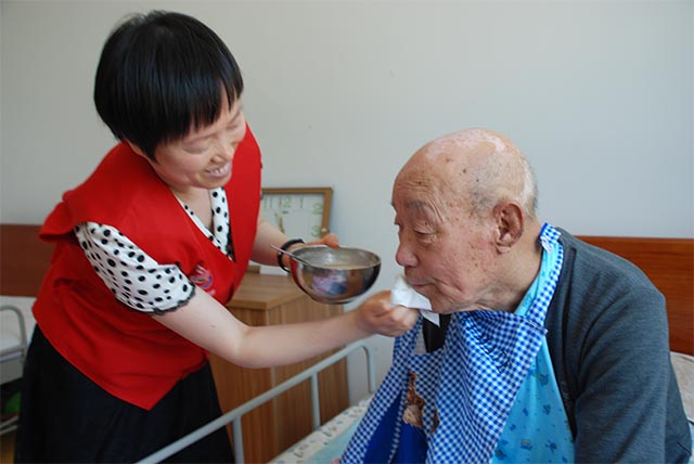 為老人剝蒜、倒醋
