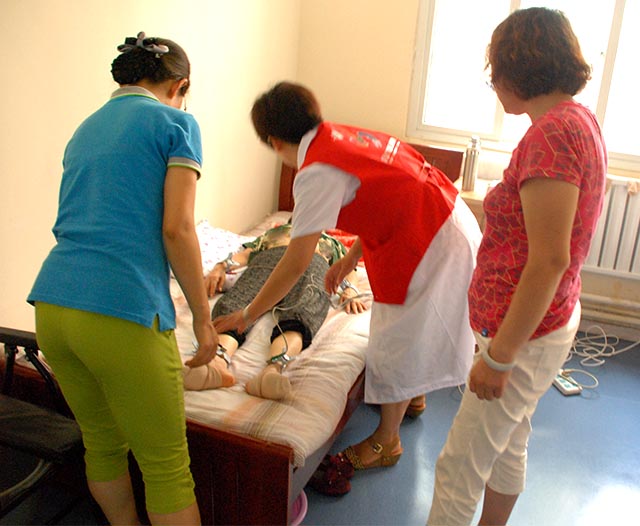 在活動中,老人們精神抖擻地圍坐在一起,志愿者與老人們親切地聊家常,訴感情。志愿者們有序、耐心的為老人們測量血壓、血糖及心電圖,詢問過往病史及近來的身體狀況、飲食起居,并提供診療方案。由于部分老人行動不便,醫(yī)護人員們主動到老人床邊進行檢查、診療。