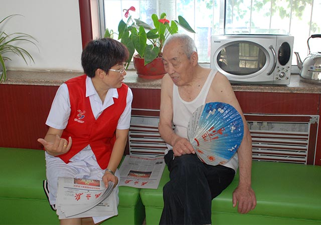 我院志愿者們大力發(fā)揚樂于助人、尊老愛幼的精神, 除了針對每位老人具體的身體情況給出治療建議外,還仔細的講解老年人常見的高血壓、高血脂、冠心病、糖尿病等病癥的生活預防和控制,為老人們普及健康知識,進行常見疾病預防宣講,并與他們親切交流,為老人發(fā)放健康宣傳資料共200余份?;顒又校以褐驹刚哌€帶來了文藝節(jié)目,如朗誦、唱歌等,現場一片歡聲笑語。