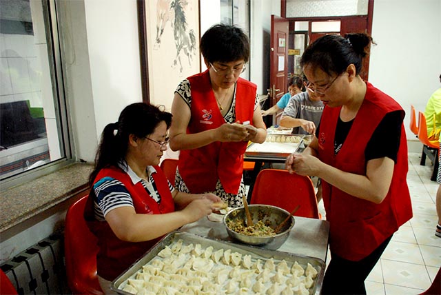 活動期間,我院志愿者們齊聚一堂,協(xié)調有序,現場洋溢著快樂的氣氛。和面的和面,搟皮兒的搟皮兒,拌餡兒的拌餡兒,包餃子的包餃子,大家一起動手,不一會兒的功夫,水餃包滿了面板,午餐時間讓老人們品嘗鮮美的水餃,感受家的溫暖。