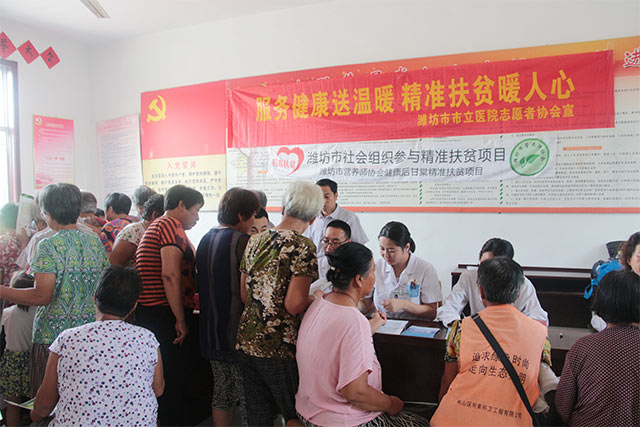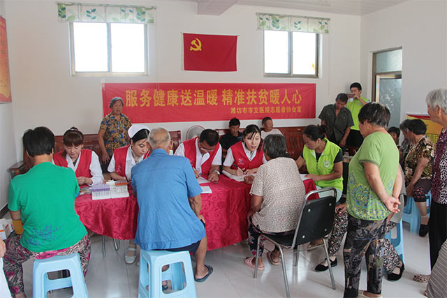 8月10日上午,由我院眼科、骨科、心內(nèi)科專家組成的醫(yī)療志愿服務(wù)隊(duì)來到了寒亭區(qū)固堤街辦盧家碼頭村開展了以“服務(wù)健康送溫暖 精準(zhǔn)扶貧暖人心”為主題的精準(zhǔn)扶貧活動(dòng)。
