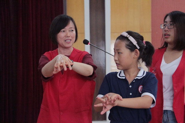 活動(dòng)中,王峰主任采取理論與實(shí)際操作相結(jié)合的方式,為學(xué)生和家長(zhǎng)們?cè)敿?xì)講解了心肺復(fù)蘇、窒息手法急救、創(chuàng)傷急救和海姆立克急救法的具體操作步驟、方法和注意事項(xiàng)。在模擬演練中,學(xué)生和家長(zhǎng)踴躍參與實(shí)踐。在醫(yī)務(wù)人員的指導(dǎo)下,認(rèn)真、仔細(xì)地完成心肺復(fù)蘇的每一個(gè)步驟,讓每一個(gè)家庭都親身體驗(yàn)參與應(yīng)急救護(hù)的樂(lè)趣?,F(xiàn)場(chǎng)還與家長(zhǎng)們分享了發(fā)生在身邊典型而鮮活的意外事故,增強(qiáng)了家長(zhǎng)們預(yù)防家庭意外傷害的意識(shí),同時(shí),家長(zhǎng)和孩子們就生活中遇到的困惑與志愿者們進(jìn)行了積極交流。我院醫(yī)院感染管理科主任孫淑梅還現(xiàn)場(chǎng)教兒童學(xué)習(xí)“七步洗手法”,整個(gè)課堂生動(dòng)、有趣、氣氛熱烈。