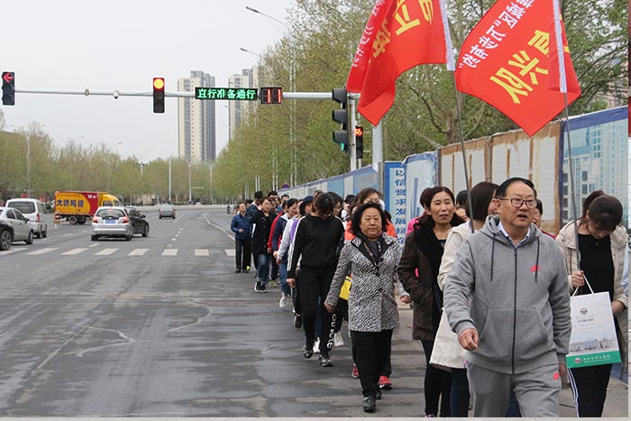 4月13日下午15時(shí),健步走活動以濰坊市市立醫(yī)院為起點(diǎn),沿白浪河西岸一路向北到達(dá)泰祥街后折返,全程約八公里。一路上,大家結(jié)伴而行、興致高昂、歡聲笑語,既愉悅了心情,充分享受到綠色出行帶來的快樂。在這八公里的行進(jìn)路途中,我院職工長長的隊(duì)伍,成為一道亮麗的風(fēng)景線,彰顯了我院職工積極進(jìn)取、昂揚(yáng)向上的精神風(fēng)貌。