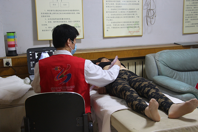 我院體檢團隊為照顧老年人的早起習(xí)慣,按照事先的工作部署,6點半前到達南關(guān)街道西南關(guān)社區(qū)衛(wèi)生服務(wù)站,為社區(qū)老人進行體檢。登記信息,準(zhǔn)確填寫體檢表,測量身高、體重、腰圍、血壓,做心電圖,行肝、膽、胰、脾、腎、甲狀腺、乳腺、前列腺B超,查血常規(guī)、尿常規(guī)、肝功、腎功、血脂、血糖等,整個過程有條不紊地進行。
