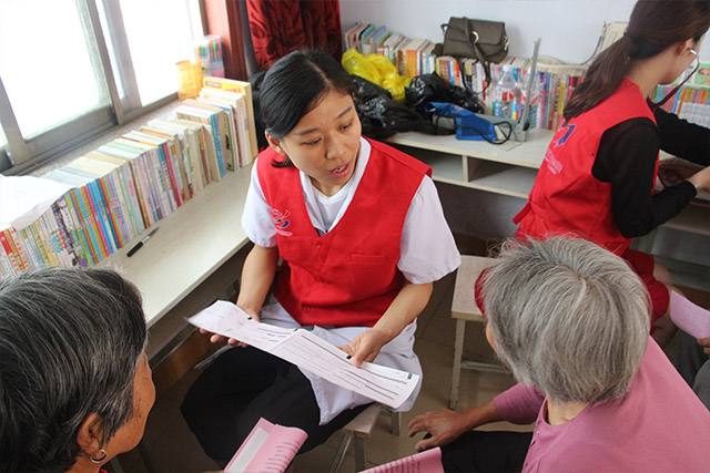 志愿者們?yōu)榇迕駛?span style="margin: 0px; padding: 0px; max-width: 100%; box-sizing: border-box !important; word-wrap: break-word !important; color: rgb(123, 12, 0);">量血壓、做心電圖、裂隙燈檢查等常規(guī)檢查,并詳細(xì)詢問村民病史、了解病情等,耐心細(xì)致地就村民們的健康問題進(jìn)行解答,針對(duì)村民的生活飲食習(xí)慣、身體狀況、日常用藥等方面進(jìn)行指導(dǎo),切實(shí)通過各種有效途徑提高村民的健康保健意識(shí)。并為村民進(jìn)行了耳穴壓豆,通過選擇耳部相應(yīng)穴位解除或緩解各種急、慢性疾病的臨床癥狀,通過其疏通經(jīng)絡(luò),調(diào)整臟腑氣血功能,促進(jìn)機(jī)體的陰陽平衡,以達(dá)到防病治病的目的。