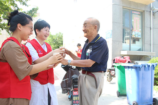 義診活動接近尾聲時,仍有不少老年居民繼續(xù)向?qū)<覀冏稍兘】抵R,我院專家們也一一耐心給予解答,居民們紛紛表示,在家門口就可以享受到免費優(yōu)質(zhì)的醫(yī)療服務(wù),這樣的活動是非常有意義的。有一位曾經(jīng)在我院內(nèi)分泌代謝科住院的大爺,炎炎夏日中為我院志愿者們送來了親自熬制的綠豆湯,為志愿者們帶來了絲絲涼意,這深深體現(xiàn)出了我院“一次為醫(yī) 終身為友 巨細無遺 無微不至”的服務(wù)理念。