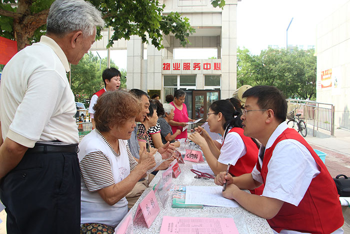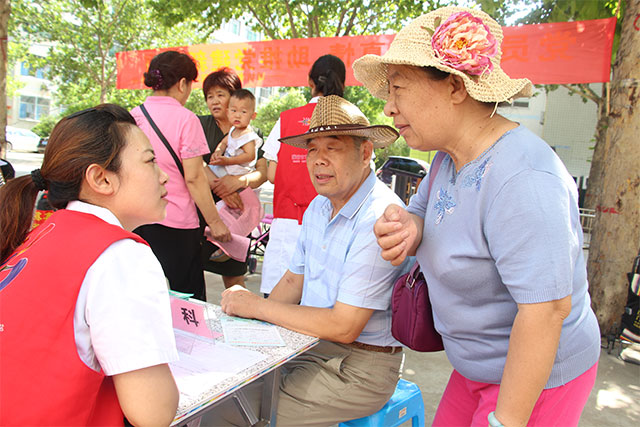 義診活動中,我院黨員專家為前來咨詢的居民進行身高、體重、血壓、血糖、視力檢查、心電圖、尿常規(guī)、大便常規(guī)、超聲檢查、糖尿病及并發(fā)癥篩查等檢查,耐心地詢問他們的身體狀況,在聽其講述自己的病癥及病情疑惑后,為他們提供專業(yè)的治療意見,并告知他們一些常見疾病的防治知識,指導(dǎo)居民合理膳食、規(guī)范用藥,以及日常的鍛煉及飲食建議。同時我院志愿者向過往居民發(fā)放健康知識宣傳材料,成為現(xiàn)場傳播健康知識的亮麗風(fēng)景線。