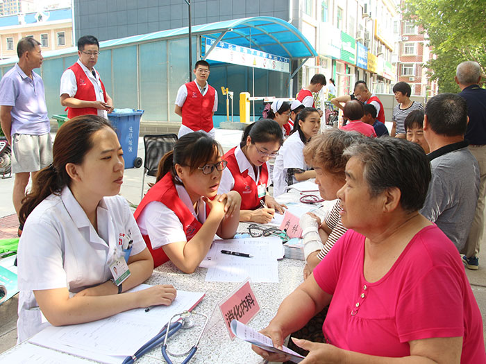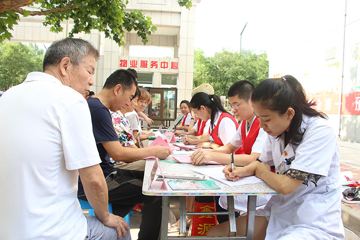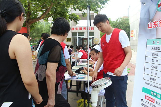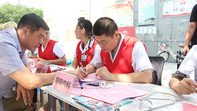為隆重紀(jì)念中國共產(chǎn)黨成立97周年,深入開展黨的群眾路線教育實踐活動,扎實推進“兩學(xué)一做”學(xué)習(xí)教育常態(tài)化制度化,繼承和發(fā)揚黨的優(yōu)良傳統(tǒng),同時為更好的普及衛(wèi)生常識,倡導(dǎo)健康生活方式,進一步提高基層百姓防病治病意識。6月28日上午,我院志愿者協(xié)會組織醫(yī)院普外科、骨科、腫瘤胸外科、眼科、心內(nèi)科、神經(jīng)內(nèi)科、呼吸內(nèi)科、消化內(nèi)科、內(nèi)分泌代謝科、康復(fù)科、超聲科、檢驗科等科室20余名黨員專家組成義診服務(wù)隊,走進濰城區(qū)清平社區(qū),為社區(qū)居民提供健康咨詢和免費體檢。