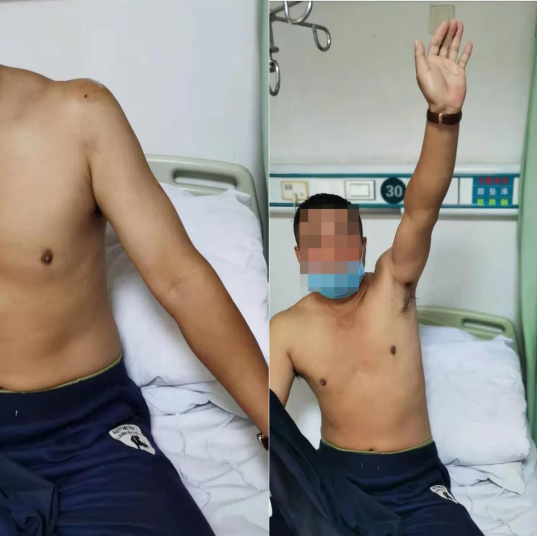 50歲男性患者,因“肩部疼痛,不能上舉1月”入院。曾在青島某大三甲醫(yī)院骨關(guān)節(jié)科就診,醫(yī)生經(jīng)過(guò)體檢以及核磁共振等檢查后,診斷為左肩袖損傷?;颊咭驊峙率中g(shù)而慕名來(lái)到我院,經(jīng)過(guò)10天正清風(fēng)痛寧三聯(lián)序貫療法治療,疼痛消失,肩關(guān)節(jié)上舉活動(dòng)自如。
