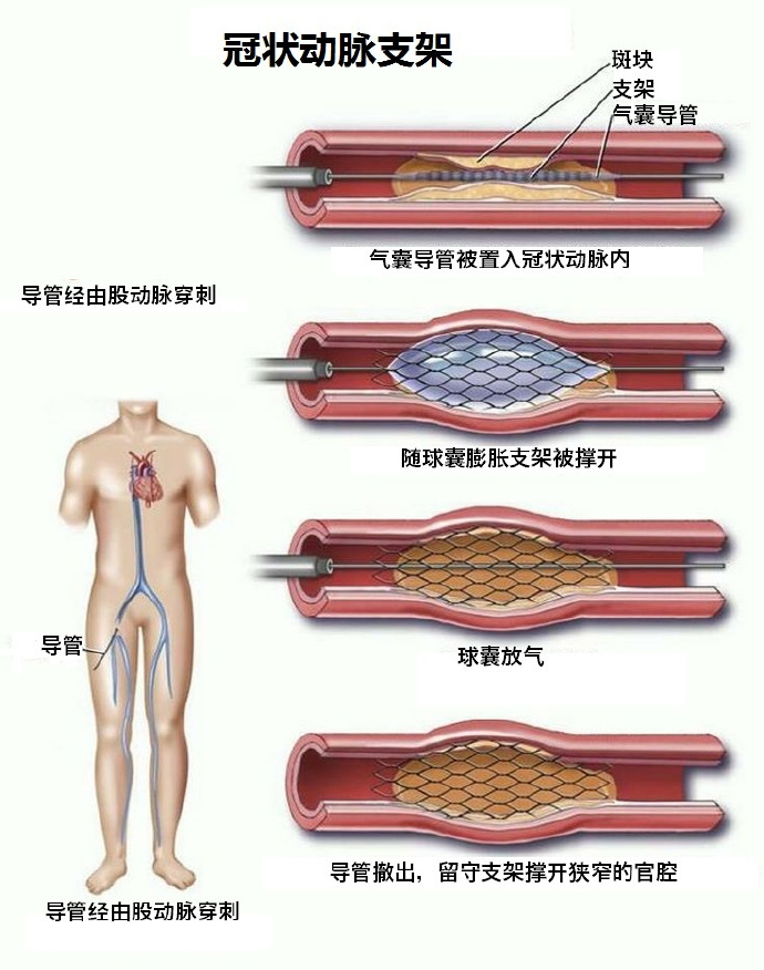 冠脈支架植入術,又稱心臟支架術。心臟支架手術,是最近20年來開展的改善冠心病引起的心肌供血不足,心臟動脈阻塞的新技術。簡單的說,心臟支架手術治療的過程是穿刺血管,使導管在血管中前行,到達冠狀動脈開口處,用特殊的傳送系統(tǒng)將支架輸送到需要安放的部位,放置、撤出導管,結束手術。病人在局部麻醉的情況下,接受手術,一般在穿刺24小時后便可下床,一般術后三天即可出院。