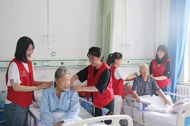 醫(yī)院大力倡導(dǎo)尊老、敬老、愛老、孝老的傳統(tǒng)美德,一走進(jìn)濰坊市市立醫(yī)院醫(yī)養(yǎng)結(jié)合病區(qū),病房走廊墻壁上懸掛著《忠孝禮義》的宣傳畫,圖文并茂的版面,便讓人感受到濃濃的孝文化氣息。醫(yī)院將每周五定為志愿者服務(wù)日,志愿者們走進(jìn)醫(yī)養(yǎng)結(jié)合病區(qū)陪老人聊天、講故事,為老人剪指甲、打掃衛(wèi)生、整理床鋪,為老年人送去無微不至的關(guān)懷,讓老人們感受到親人般的關(guān)懷和溫暖;成立“助老志愿服務(wù)基地”,組織鳶都義工以及來自社會(huì)各界的志愿者,開展“一對(duì)一”“多對(duì)一”關(guān)愛老人模式,通過真情的陪伴讓老人變得開朗、自信,生活有樂趣;醫(yī)院每逢節(jié)日都會(huì)為老人送上慰問和關(guān)心,如端午節(jié)送粽子,春節(jié)送水餃等。此外,在醫(yī)養(yǎng)結(jié)合病區(qū),每逢有老人過生日,工作人員都精心安排,為過生日的老人訂制蛋糕、做長壽面,讓老人在歡歌笑語中度過一個(gè)難忘的生日,通過一系列舉措,把醫(yī)養(yǎng)結(jié)合區(qū)打造成老人的幸福之家,讓老人在這里住的溫馨、舒適又安全,讓他們重新感受到了家庭的溫暖,使他們的精神得到安慰,有利于心理健康發(fā)展。
