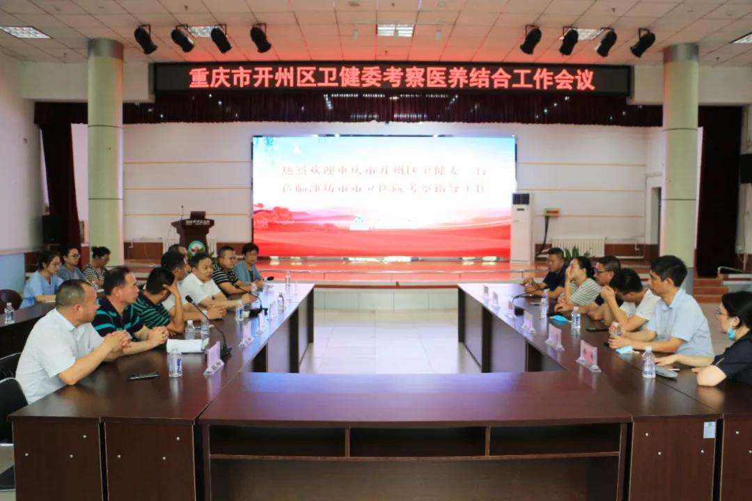 8月4日下午,重慶市開州區(qū)衛(wèi)健委黨委委員杜子華、重慶市開州區(qū)衛(wèi)健委副科長譚茜、重慶市開州區(qū)衛(wèi)健委科長李靜、重慶市開州區(qū)文峰街道社區(qū)衛(wèi)生服務(wù)中心主任陳小峰、重慶市開州區(qū)滿月鎮(zhèn)衛(wèi)生院院長曾勝、重慶市開州區(qū)大德鎮(zhèn)衛(wèi)生院副院長鄭易蒞臨我院考察醫(yī)養(yǎng)結(jié)合工作,濰坊市衛(wèi)健委二級調(diào)研員劉成宏、濰坊市衛(wèi)健委醫(yī)養(yǎng)健康產(chǎn)業(yè)科科長房孝生、濰坊市衛(wèi)健委扶貧辦主任于建偉、濰坊市衛(wèi)健委醫(yī)養(yǎng)健康產(chǎn)業(yè)科科員劉國棟、濰城區(qū)衛(wèi)健局副局長趙強、濰城區(qū)醫(yī)養(yǎng)健康產(chǎn)業(yè)科科長馮永勝等領(lǐng)導(dǎo)陪同視察,濰坊市市立醫(yī)院院長季洪勝,副院長鄒晨容,門診部主任、醫(yī)養(yǎng)結(jié)合負責(zé)人劉良艷接待來訪并陪同視察。