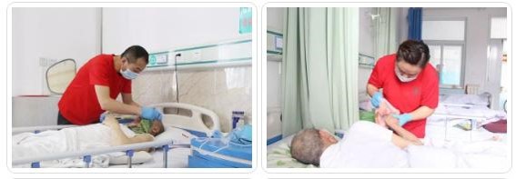 醫(yī)養(yǎng)結(jié)合區(qū)設(shè)有專業(yè)的護理團隊,嚴格按照分級護理原則,根據(jù)病人的狀態(tài),確立不同的護理級別,規(guī)范的管理每一位病人。加強對失能、失半能老年人皮膚壓瘡的風(fēng)險評估與管理,定期為老人翻身、拍背,以助排痰,加強皮膚護理,促進血液循環(huán),防止壓瘡的發(fā)生。針對管道護理,比如長期留置導(dǎo)尿管、胃管的患者,給予細致化的管道護理,定時更換、及時清理管道等;針對呼吸道管理,給氧治療、霧化吸入、氣管切開護理等;加強健康監(jiān)測,對患者的血壓、血糖等定期監(jiān)測,讓醫(yī)生能夠更及時、準確的了解和掌握老人的實際情況,給予相應(yīng)的降壓、降血糖等處理。