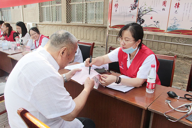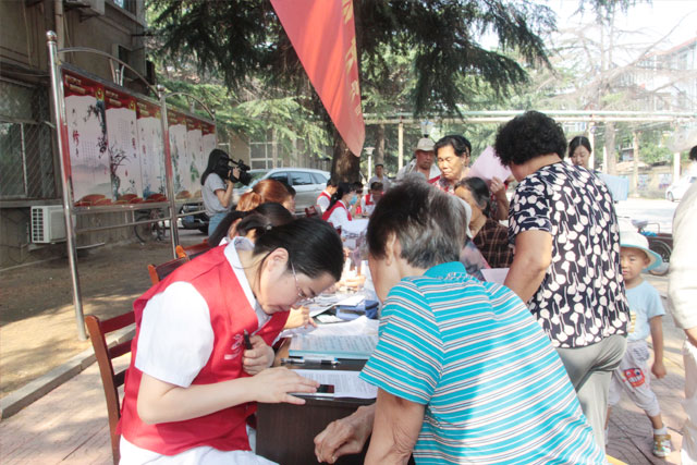 義診活動(dòng)中,我院黨員專家為前來咨詢的居民進(jìn)行身高、體重、血壓、血糖、視力檢查、心電圖、糖尿病及并發(fā)癥篩查等檢查,耐心地詢問他們的身體狀況,在聽其講述自己的病癥及病情疑惑后,為他們提供專業(yè)的治療意見,并告知他們一些常見疾病的防治知識(shí),指導(dǎo)居民合理膳食、規(guī)范用藥,以及日常的鍛煉及飲食建議。同時(shí)我院黨員志愿者向過往居民發(fā)放宣傳資料及醫(yī)保政策宣傳單頁(yè),向居民講解基本醫(yī)療保險(xiǎn)政策,成為現(xiàn)場(chǎng)傳播健康知識(shí)的亮麗風(fēng)景線。