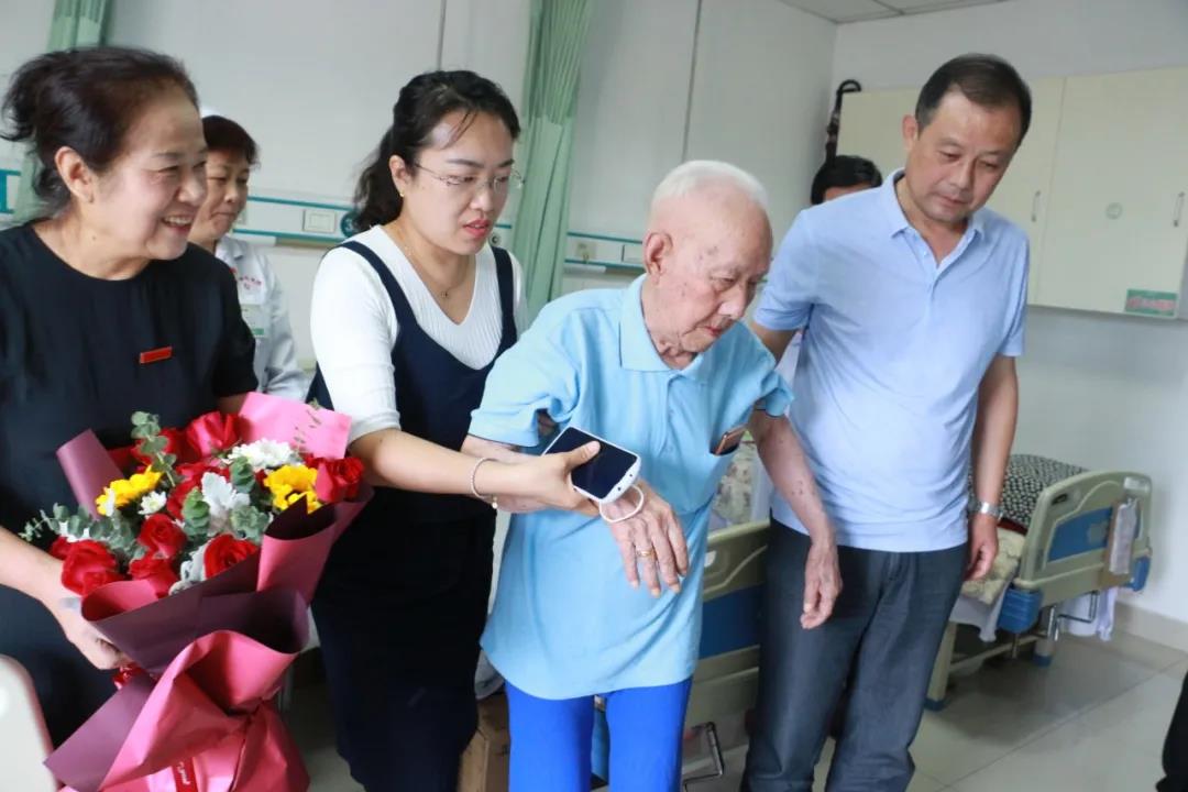 在紀(jì)念中國人民抗日戰(zhàn)爭暨世界反法西斯戰(zhàn)爭勝利75周年之際,9月4日,醫(yī)院黨委副書記王曉晨、院長助理韓佳君、院辦主任何順堂走進(jìn)醫(yī)院神經(jīng)內(nèi)科病房慰問抗戰(zhàn)時(shí)期參加革命工作的離休干部張?jiān)鲋?,向他致以親切的問候并送上慰問品和鮮花。