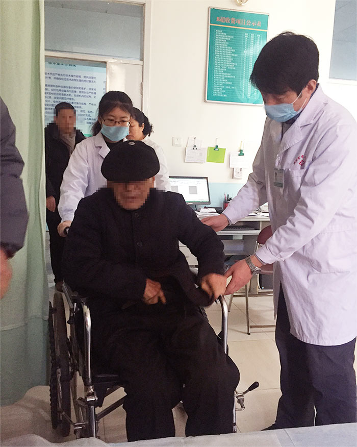 這位李大爺今年78歲,因為排尿困難的原因來超聲科進行泌尿系超聲檢查,沒有家屬的陪同,而且耳背的厲害,所以行動特別不便。劉醫(yī)生的細心幫助,使老大爺不停的感謝著,可是,這對于我們?yōu)H坊市市立醫(yī)院每一位超聲科醫(yī)生來說,卻是一件再平常不過的日常小事。