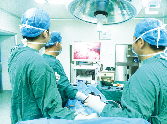 我院微創(chuàng)中心首席專家解魯明主任醫(yī)師手術(shù)中