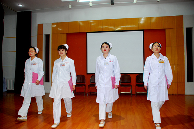 首先是(走姿)禮儀,正肩平,雙目平視,抬頭、挺胸、收腹、提臀、以胸代步行 ,兩腳輕穩(wěn),自然擺動,步履輕捷,彈足有力。每一名推選的護(hù)士都從容,自信滿滿。