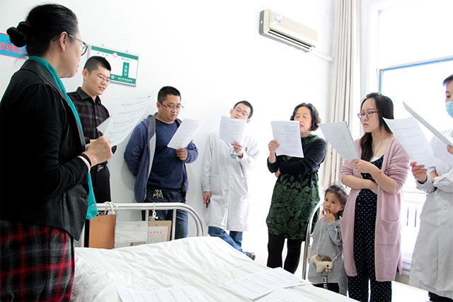 來到呼吸內(nèi)科病區(qū),《為立贊》依然飄蕩在耳間,呼吸內(nèi)科號召科室人員積極參加比賽、全員齊上陣,李清華主任為了此次活動還專門請了音樂老師來指導(dǎo)他們,科室人員也特別重視此次歌詠比賽,宋艷華護(hù)士帶著四歲的孩子專門從家趕來練習(xí)歌曲,正是這種做事認(rèn)真負(fù)責(zé)的態(tài)度,市立醫(yī)院才能夠歷久彌新,長足發(fā)展,更好的屹立于醫(yī)院之林。