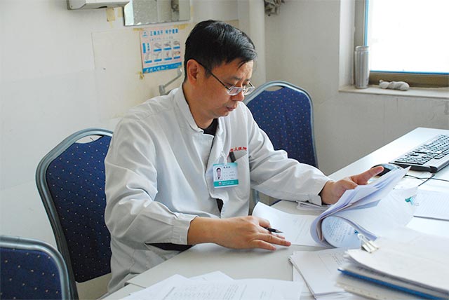 腫瘤科單寶華醫(yī)生認真查閱病例