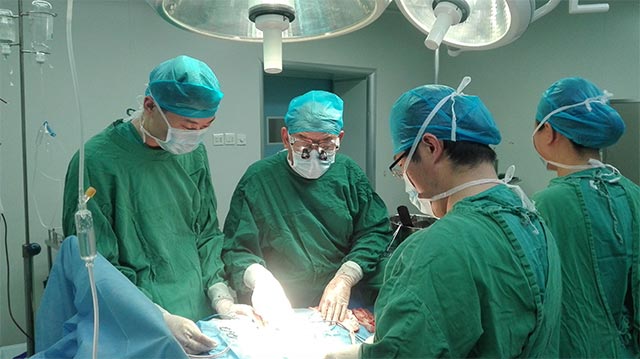 手術室     普外科首席專家李森主任在做胰十二指腸切除手術