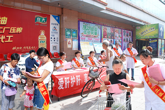 7月28日,是世界衛(wèi)生組織確定的第六個(gè)世界肝炎日,今年的宣傳主題是“愛(ài)肝護(hù)肝,享受健康”。為提高公眾對(duì)關(guān)注肝炎防治工作的關(guān)注度,幫助更多的肝病患者得到科學(xué)、合理的治療,呼吁全社會(huì)摒棄歧視,對(duì)肝病患者伸出友愛(ài)之手,濰坊市市立醫(yī)院志愿者協(xié)會(huì)以“世界肝炎日”為契機(jī),在濰城區(qū)萬(wàn)家福超市前舉辦 “愛(ài)肝護(hù)肝,享受健康”大型公益宣傳活動(dòng)。