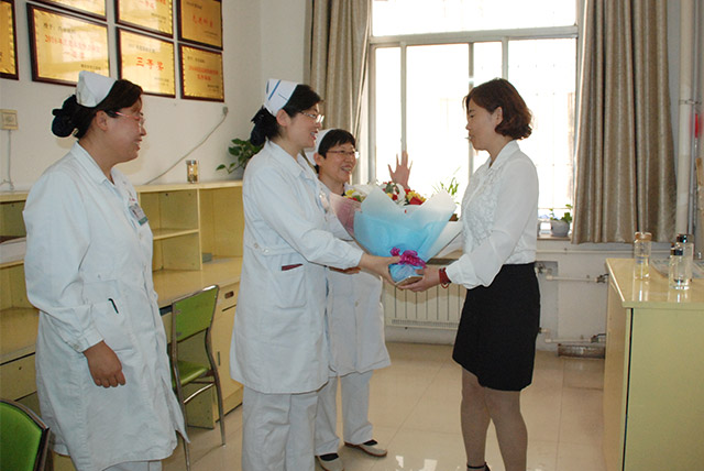 2017年5月12日是第106個(gè)國際護(hù)士節(jié)。為慶祝 “5•12國際護(hù)士節(jié)”,激勵(lì)全體護(hù)理工作者愛崗敬業(yè)、積極進(jìn)取的奉獻(xiàn)精神,5月12日上午,我院黨委書記、副院長鄭海妹,黨委副書記、副院長李會(huì)全,副院長解魯明帶領(lǐng)院工會(huì)、院感科、醫(yī)教科、護(hù)理部等科室負(fù)責(zé)人深入臨床科室,為全院護(hù)士送去精美的鮮花和節(jié)日的祝福,表達(dá)醫(yī)院大家庭對護(hù)士姐妹們辛勤勞動(dòng)和默默堅(jiān)守的感謝和慰問。