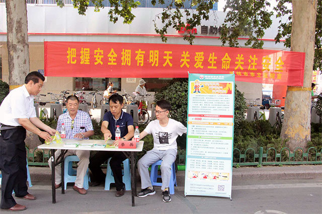 為提高群眾的安全意識,普及安全知識,弘揚安全文化,增強安全責任意識,強化安全生產(chǎn)社會宣傳,強化“安全第一,重在預防”意識。我院積極響應濰城區(qū)政府的號召,6月16日上午,在區(qū)衛(wèi)計局統(tǒng)一安排下,于東風西街進行了“安全生產(chǎn)月”宣傳活動,取得了良好的社會效應。