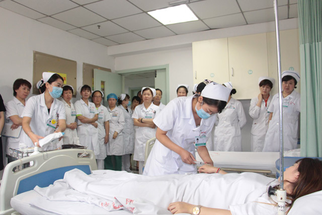 為增強(qiáng)護(hù)士對應(yīng)急、突發(fā)事件的應(yīng)變能力,通過演練提高護(hù)理隊伍素質(zhì),護(hù)理部根據(jù)年初制定的應(yīng)急預(yù)案演練計劃,于6月16日下午,開展了本年度第三次全院護(hù)理應(yīng)急預(yù)案演練。護(hù)理部主任孫春梅、副主任劉海英及各科護(hù)士長,N0、N1級護(hù)士共計80余人參加了此次應(yīng)急演練。此次演練分別從普外泌尿外科、腫瘤胸外科依次展開,兩個科室分別進(jìn)行了用藥錯誤應(yīng)急預(yù)案演練、化療藥物外滲應(yīng)急預(yù)案演練。