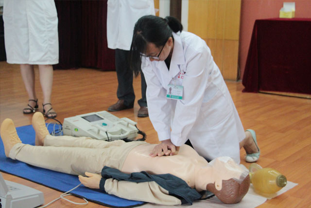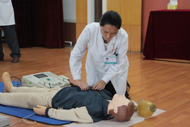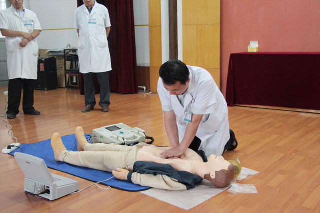 此次培訓(xùn),王主任采用情景模擬、多媒體授課等形式系統(tǒng)培訓(xùn)了心臟驟停的識別、呼叫、胸外按壓、人工通氣、除顫儀的應(yīng)用等相關(guān)理論知識、操作流程及操作要點(diǎn),并多次強(qiáng)調(diào)了掌握心肺復(fù)蘇操作技術(shù)的重要性,要求全院職工人人掌握。緊接著,王主任就心肺復(fù)蘇及除顫的操作對全院職工進(jìn)行操作示范,快速完成高質(zhì)量的救護(hù)。此次講座理論聯(lián)系實(shí)際,形象生動,貼近臨床,進(jìn)一步規(guī)范了我院心肺復(fù)蘇除顫的操作方法及急救流程,為我院不斷提高醫(yī)療質(zhì)量、保障患者安全奠定了堅(jiān)實(shí)的基礎(chǔ)。