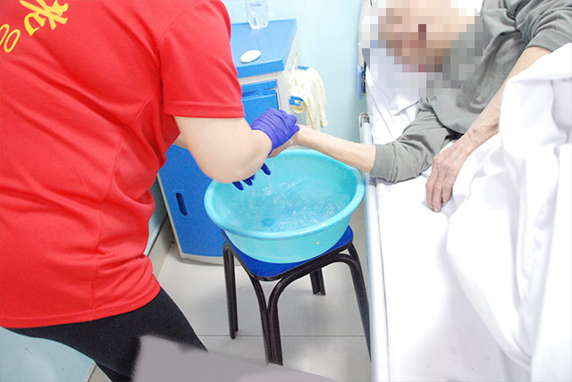 在醫(yī)養(yǎng)結合病區(qū),每天上午八點,趙大娘的主管醫(yī)師準時來床旁查房,隨時了解老人的身體變化,護士會按時將藥品和溫開水送到面前。護工每天為她擦洗身體,兩小時一翻身、拍背;在趙大娘的床頭還有一個資料卡,明確具體時間該吃什么、水的用量、飲食禁忌、護理重點。醫(yī)院志愿者協(xié)會的工作人員每周還會定期來到醫(yī)養(yǎng)結合病區(qū)陪她聊天,幫她剪指甲、打掃衛(wèi)生、整理床鋪。經(jīng)過一段時間的精心護理,趙大娘的壓瘡慢慢消退、康復。病區(qū)內(nèi)每逢有過生日的老人,工作人員都精心安排、充分準備,為過生日的老人訂制蛋糕、做長壽面,讓老人在歡歌笑語中度過一個難忘的生日。時間久了,趙大娘慢慢習慣了這里的生活,對醫(yī)護人員也產(chǎn)生了好感與信任