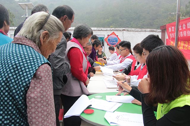 考慮到有些留守老人健康意識(shí)淡薄,有病不想治、有病不能治的情況依然存在,我院志愿者還積極發(fā)放慢性病知識(shí)宣傳冊(cè),推動(dòng)貧困群眾重視和關(guān)注身體健康。志愿者們緊張地忙碌著,不知不覺(jué),午時(shí)到了,義診任務(wù)也暫時(shí)告一段落,各種常見(jiàn)病及多發(fā)病的咨詢、初步診斷等讓在場(chǎng)的村民獲益不少。