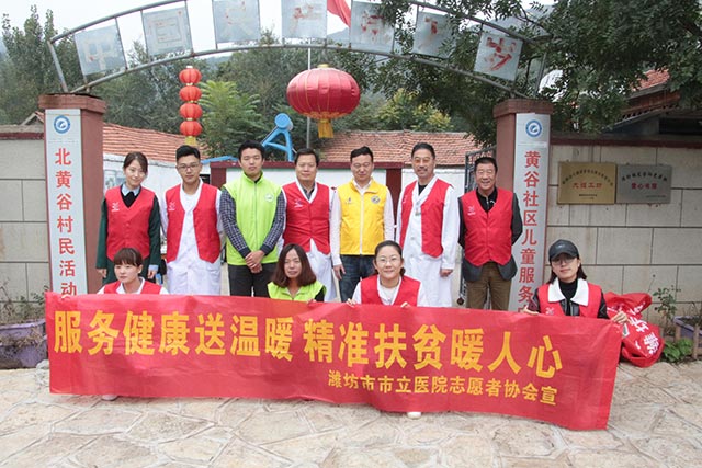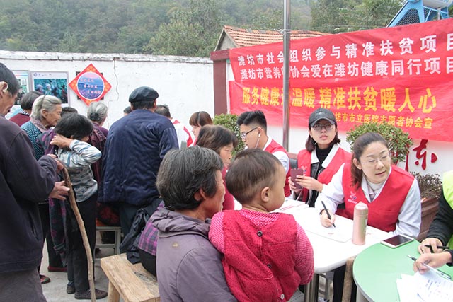 “大爺,秋天大山里潮濕,容易引發(fā)風(fēng)濕性關(guān)節(jié)炎,你要注意休息,避免干重活。”“大娘,山里溫差大、光照少,孩子易呼吸道疾病,要多開(kāi)窗通風(fēng),注意防寒保暖。” 10月17日是“國(guó)際消貧日”,也是全國(guó)第四個(gè)“扶貧日”,為助力精準(zhǔn)扶貧,扎實(shí)推進(jìn)精準(zhǔn)扶貧工作,有效解決貧困群眾看病難、就醫(yī)難問(wèn)題。10月16日、17日,在市團(tuán)委的牽頭組織下,我院志愿者協(xié)會(huì)聯(lián)合鳶都義工、濰坊市營(yíng)養(yǎng)師協(xié)會(huì)來(lái)到臨朐縣北黃谷村開(kāi)展以“服務(wù)健康送溫暖 精準(zhǔn)扶貧暖人心”為主題的醫(yī)療志愿服務(wù)活動(dòng),為大山深處的貧困戶送去優(yōu)質(zhì)免費(fèi)的上門醫(yī)療服務(wù)。