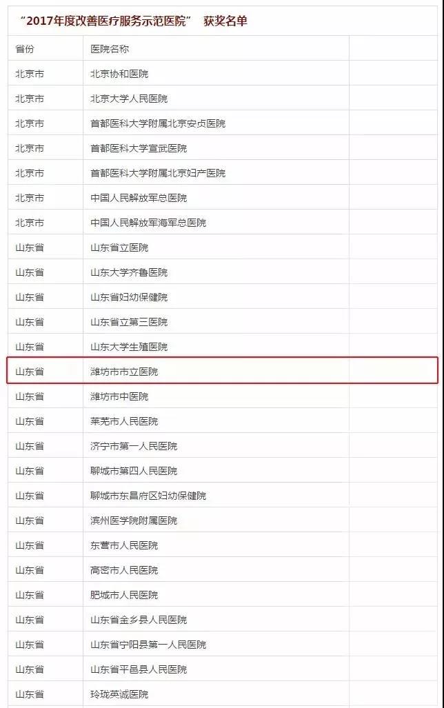 “2017年度改善醫(yī)療服務(wù)示范醫(yī)院”  獲獎名單(部分)