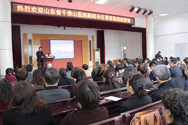 新時代開啟新征程,新征程引領(lǐng)復(fù)興新希望,為進一步提升醫(yī)院的管理水平,加強醫(yī)院人才隊伍建設(shè),對醫(yī)院進行科學(xué)有效管理,提升醫(yī)院綜合實力,3月24日下午,我院特邀山東省千佛山醫(yī)院副院長任勇蒞臨我院授課,山醫(yī)集團董事長王世賓,山醫(yī)集團副總裁徐汝奎、楊瑞等集團領(lǐng)導(dǎo)班子成員以及醫(yī)院各科室中層干部、骨干共計200余人參加了此次講座。此次授課由黨委書記、院長鄭海妹主持。