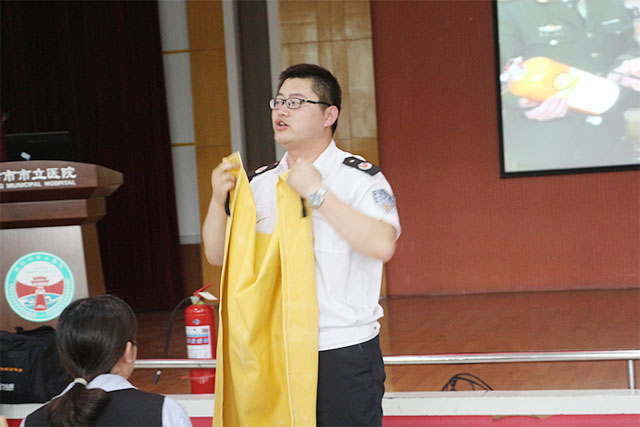培訓(xùn)中,王教員通過近期發(fā)生的火災(zāi),運用圖文并茂、事故分析的方式,詳細講解了消防基礎(chǔ)常識、火災(zāi)現(xiàn)場逃生自救、火災(zāi)撲救實踐操作等幾個方面,并現(xiàn)場展示了滅火器、滅火毯等器材的使用方法、使用注意事項,授課通俗易懂,讓大家從慘痛的火災(zāi)教訓(xùn)中,深刻認識到消防知識的重要性,增強了醫(yī)務(wù)人員消防安全意識和防災(zāi)避險能力。培訓(xùn)結(jié)束后,王教員詳細解答了參訓(xùn)人員的提問,引發(fā)大家的思考,達到了良好的互動效果。