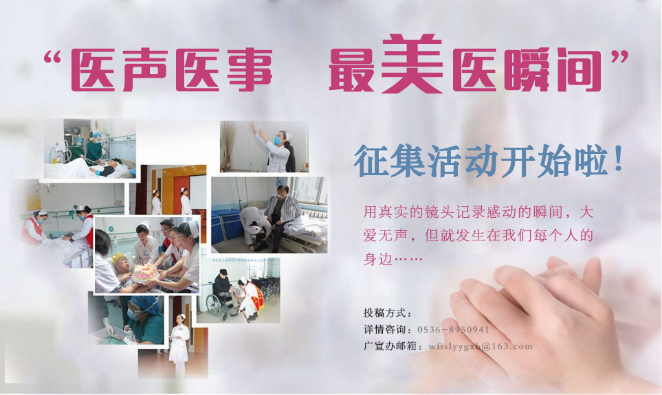 為更好地推動(dòng)醫(yī)院文化建設(shè),展示醫(yī)療工作者的良好形象,講述醫(yī)院里的感人故事,山東省醫(yī)院協(xié)會(huì)與山東健康咨詢網(wǎng)、中華網(wǎng)、鳳凰網(wǎng)齊魯網(wǎng)等健康平臺(tái)發(fā)起首屆醫(yī)院文化“醫(yī)聲醫(yī)事·最美醫(yī)瞬間”活動(dòng)。