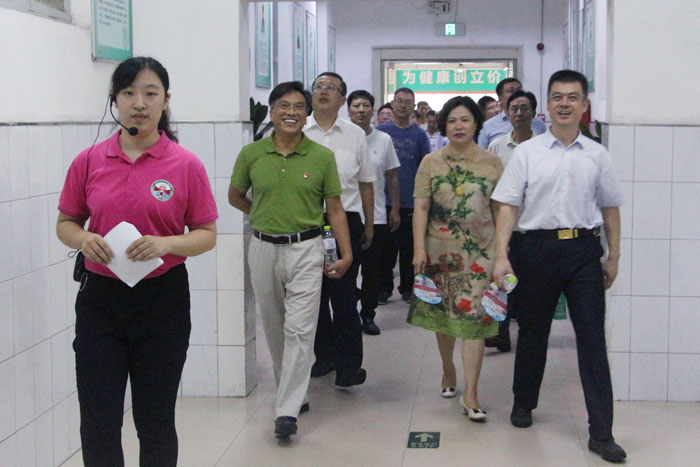 7月28日上午,濰坊市衛(wèi)生計(jì)生委黨委委員、副主任李宗泉,家庭發(fā)展科科長(zhǎng)焦字偉,濰城區(qū)副區(qū)長(zhǎng)曹春,濰城區(qū)衛(wèi)計(jì)局黨委書記、局長(zhǎng)李貴武,濰城區(qū)衛(wèi)計(jì)委黨委副書記于萍,濰城區(qū)衛(wèi)計(jì)局黨委委員、區(qū)計(jì)生協(xié)會(huì)會(huì)長(zhǎng)韓建偉,濰城區(qū)計(jì)生管理科科長(zhǎng)馮永勝以及各縣市區(qū)、市屬各開發(fā)區(qū)衛(wèi)計(jì)局分管醫(yī)養(yǎng)結(jié)合工作副局長(zhǎng)、科長(zhǎng),部分二級(jí)以上醫(yī)院分管院長(zhǎng)或醫(yī)養(yǎng)結(jié)合機(jī)構(gòu)負(fù)責(zé)人,市屬各醫(yī)院分管醫(yī)養(yǎng)結(jié)合工作副院長(zhǎng)等100余人蒞臨我院,對(duì)我院的醫(yī)養(yǎng)結(jié)合工作進(jìn)行參觀及指導(dǎo)。我院黨委書記、院長(zhǎng)鄭海妹,副院長(zhǎng)鄒晨容、解魯明及醫(yī)院各科室中層管理人員熱情接待并陪同參觀。